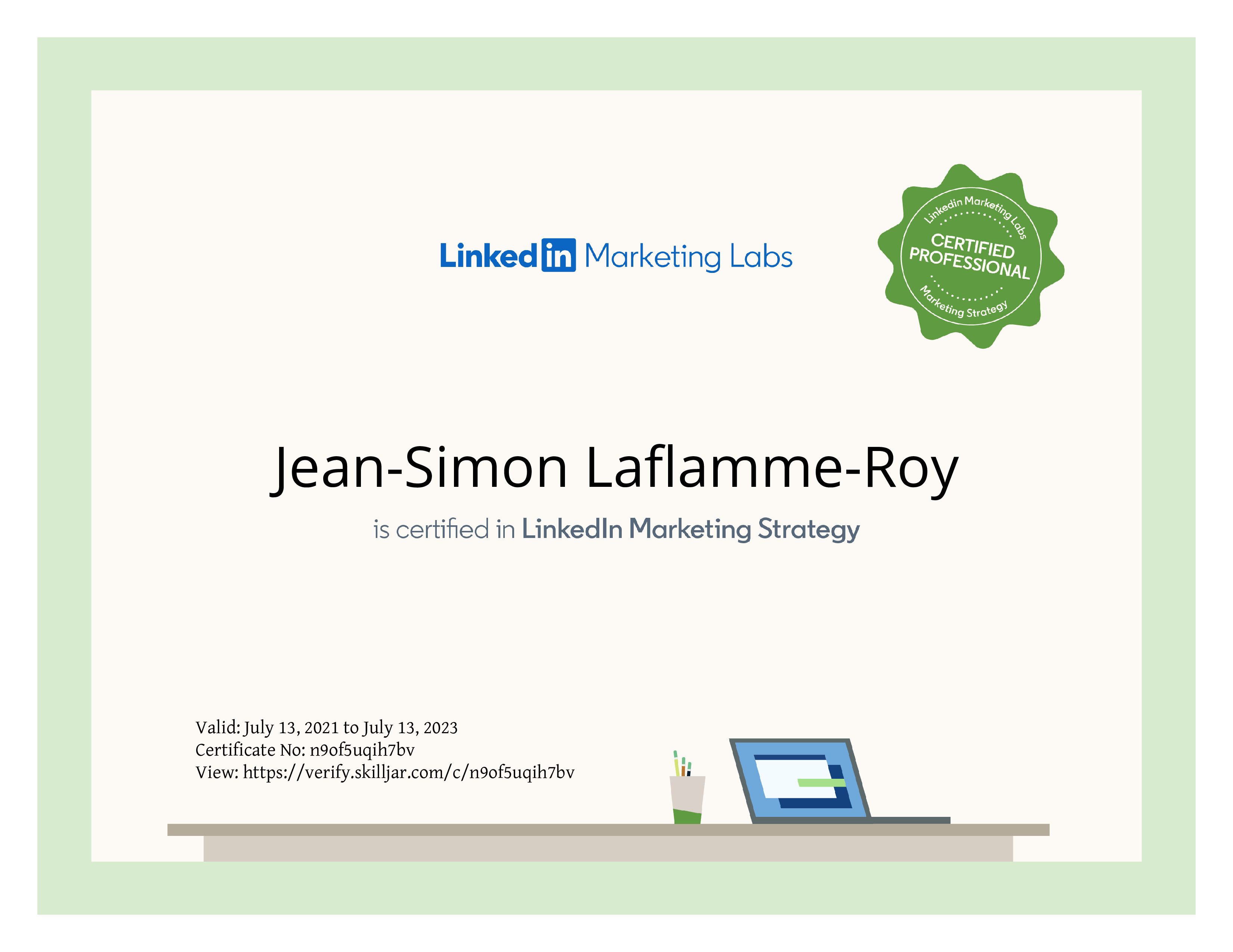 | Abgeschlossener Kurs | LinkedIn Marketing Strategy Certification |